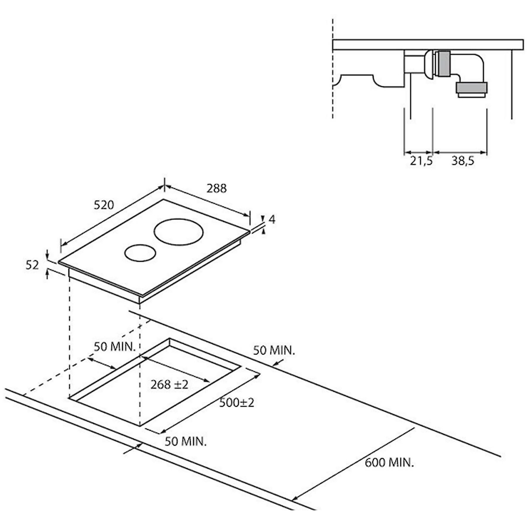 Touch controls; Central Control Interface; 9 power levels; Total power 3.5 kW; Important: For size please refer to the installation dimensions shown in the technical drawing. Extra content, IoT App: hOn |