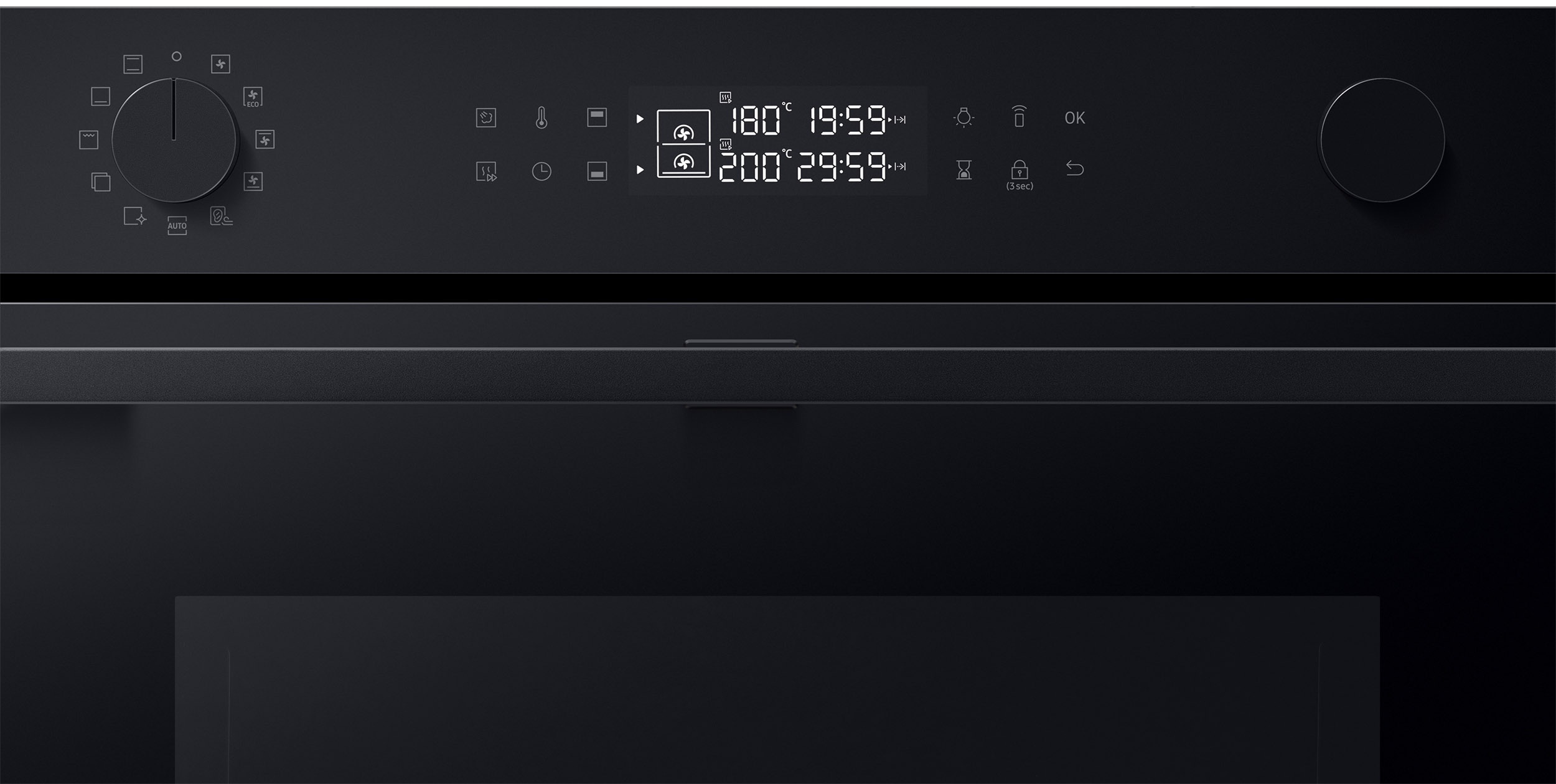 Cooking system: Conventional + ventilated. Steam Natural Steam. Upper Grill. Lower grill. Single mode (Superior + Convection). Big grill. Eco Grill. Single mode (Lower + Convection). Air Sous Vide. |