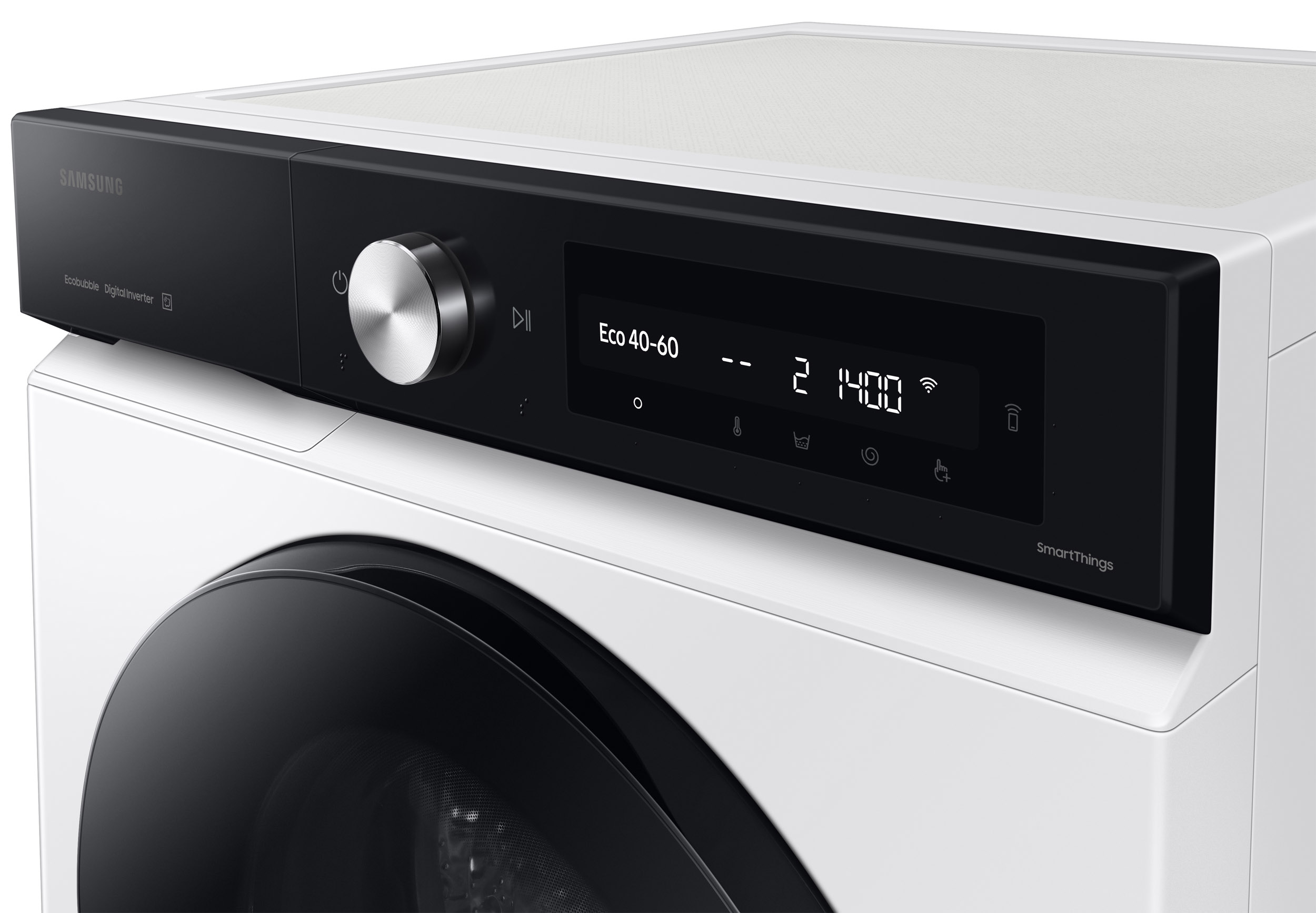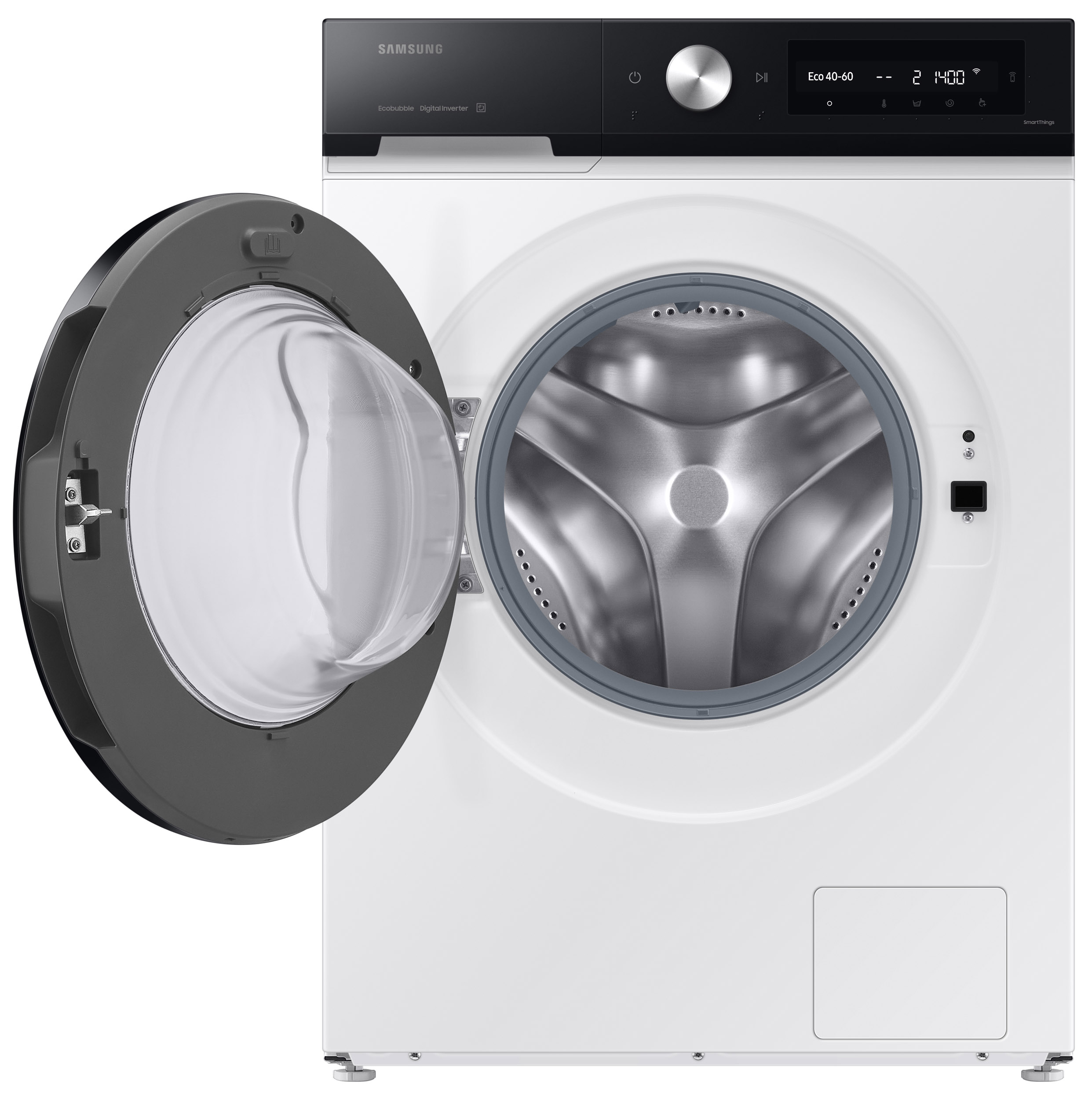 Samsung WW90DB7U94GEU3. Loading type: Front-load. Rated capacity: 9 kg, Spin-drying class: B, Noise level (spin): 72 dB, Maximum spin speed: 1400 RPM. Product colour: White. Width: 600 mm, Depth: 600 mm, Height: 850 mm. Energy efficiency class: A
