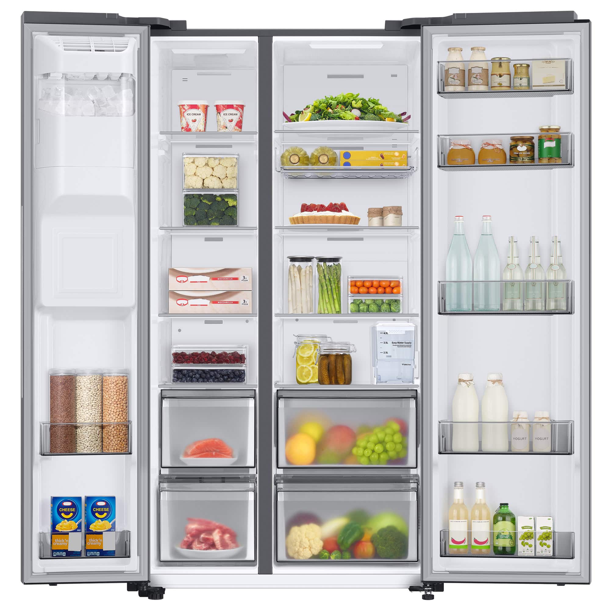Speed is also important. At the push of a button, the Power Cool function quickly circulates cold air in the refrigerator to quickly cool food and drinks. The Power Freeze function creates a quick blast of cold air in the freezer. It is the best for freezing or cooling food at the right point, but also for making ice.
