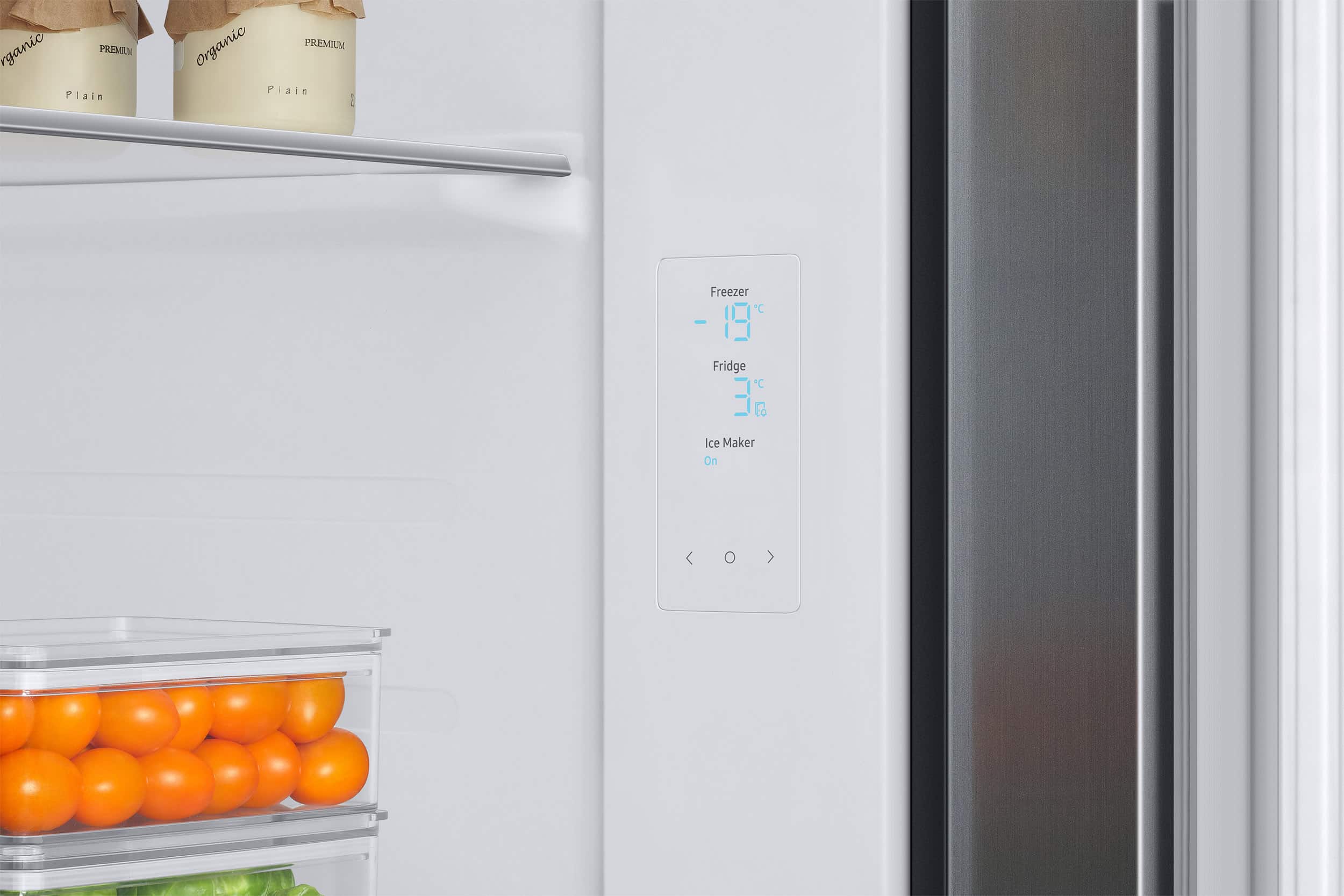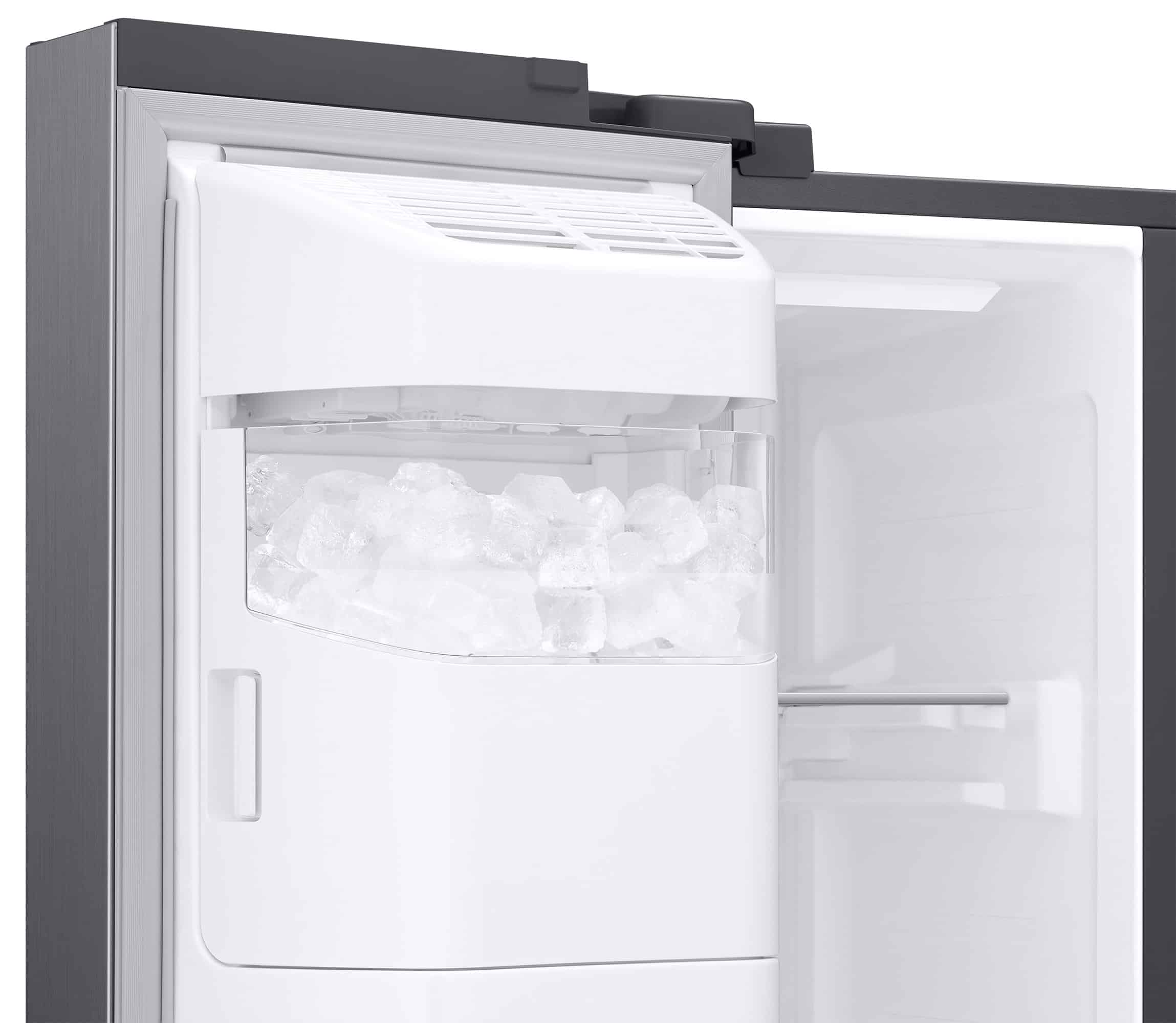 Free up space to store food without running out of ice with an ice maker built into the door. Its position allows you to have extra space in the freezer, without affecting the amount of ice produced. And the clear plastic coating lets you see how much is left of it.