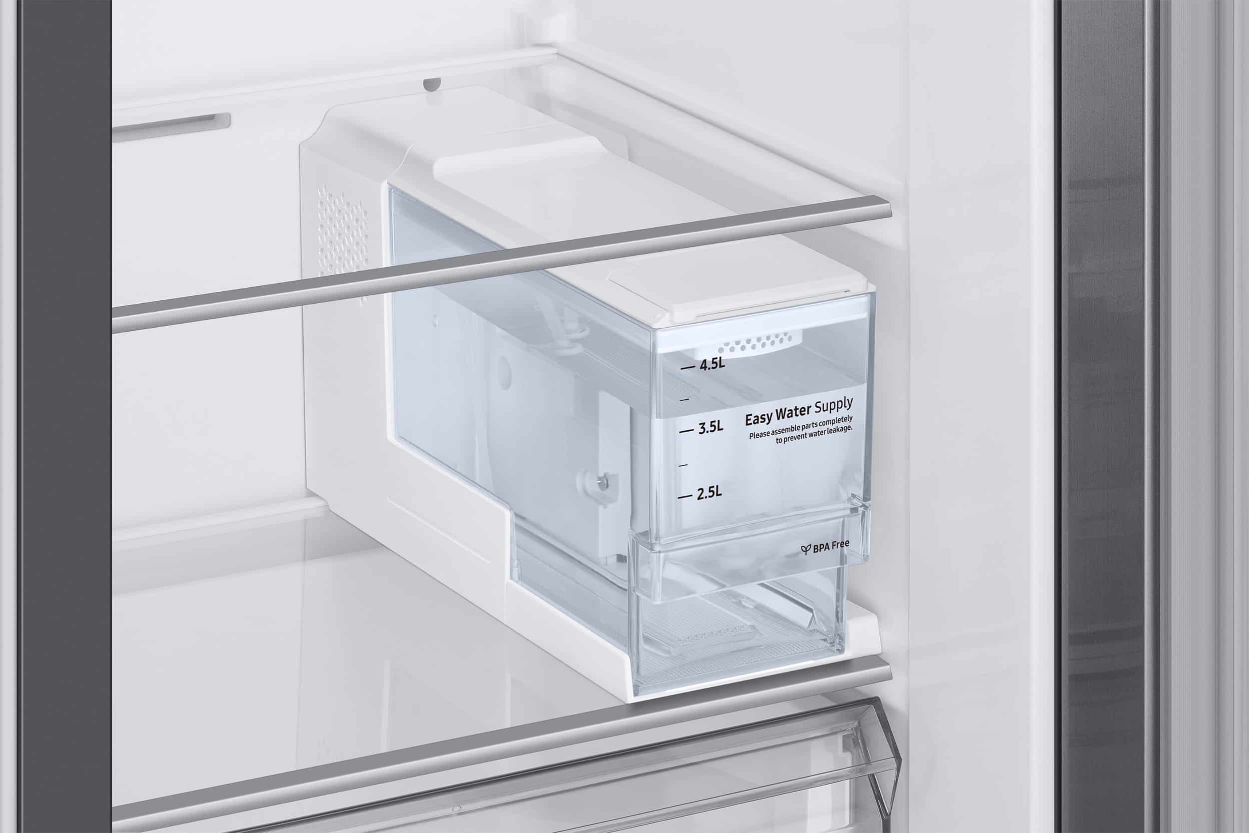 Install the refrigerator wherever you want without wasting time with messy plumbing or ductwork. The refrigerator has a large, BPA-free * water tank for its water and ice dispenser without a water connection. It can thus be installed in almost any position and there is no need to change the water filter regularly, which saves time and money.