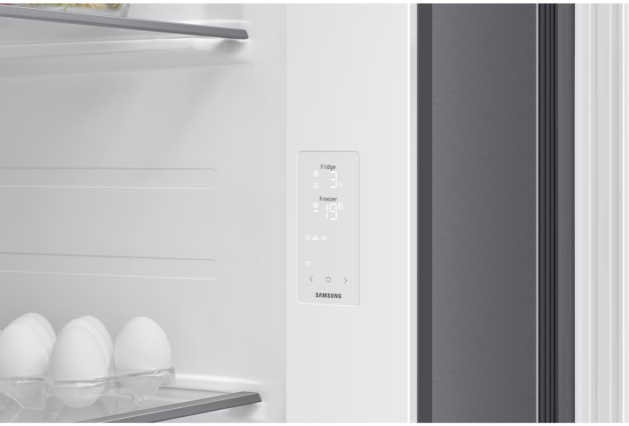 From today you will never lose sight of your refrigerator again. Thanks to the built-in Wi-Fi you can monitor and adjust its performance using the SmartThings app[1]. You can keep an eye on cooling mode, change the temperature, and receive notifications if you left the door open. In addition, the system will help you identify any problems.