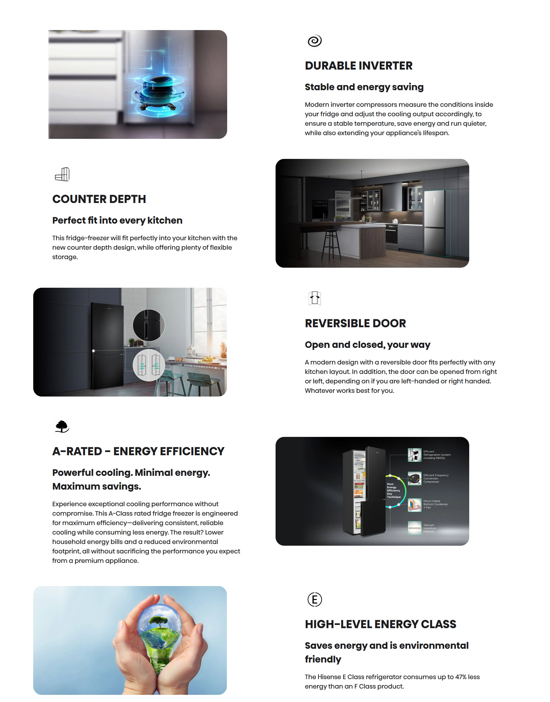 - Total capacity 495L (Fridge: 345L; Freezer 150L)