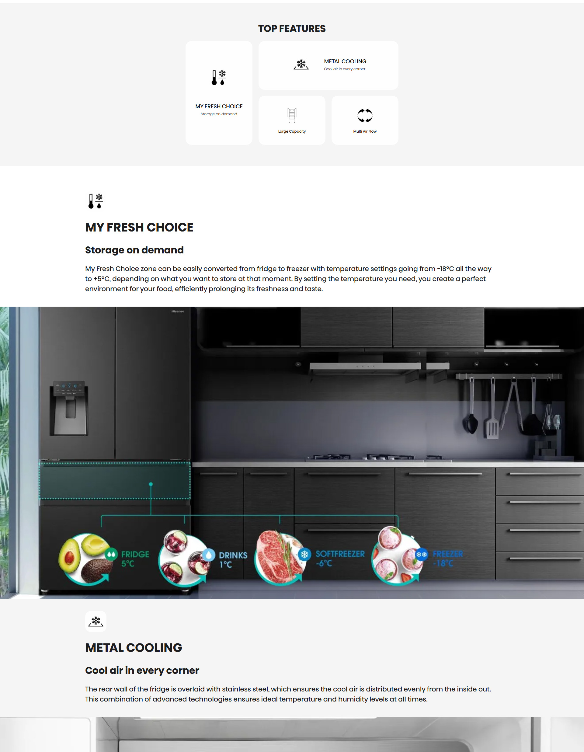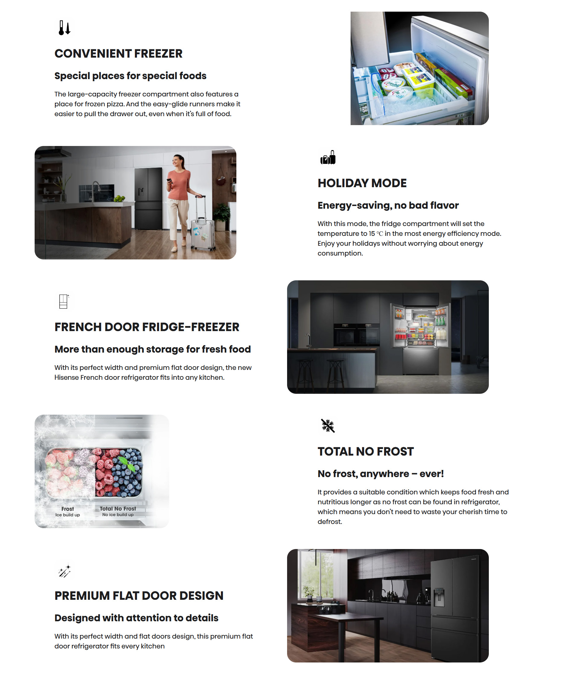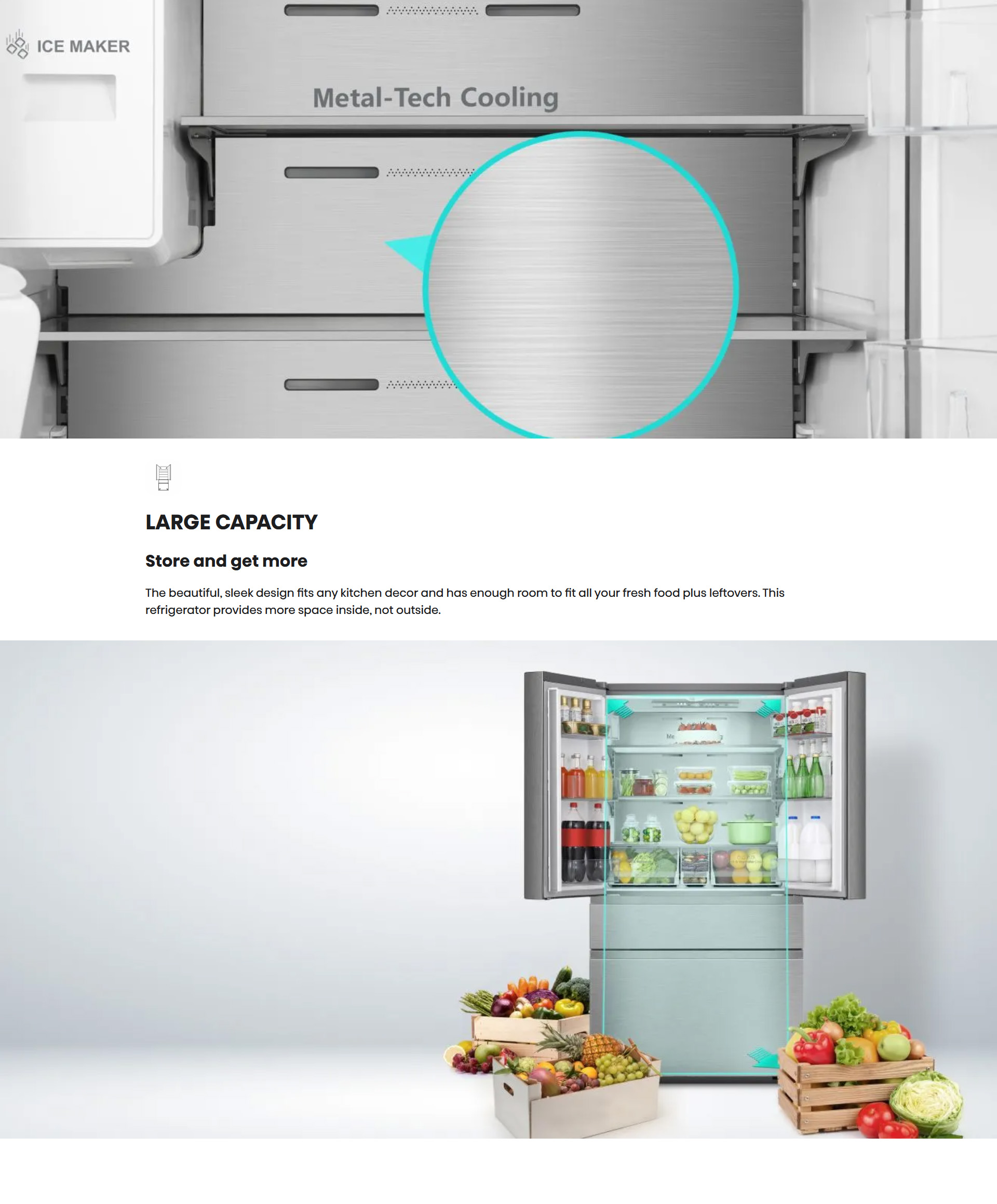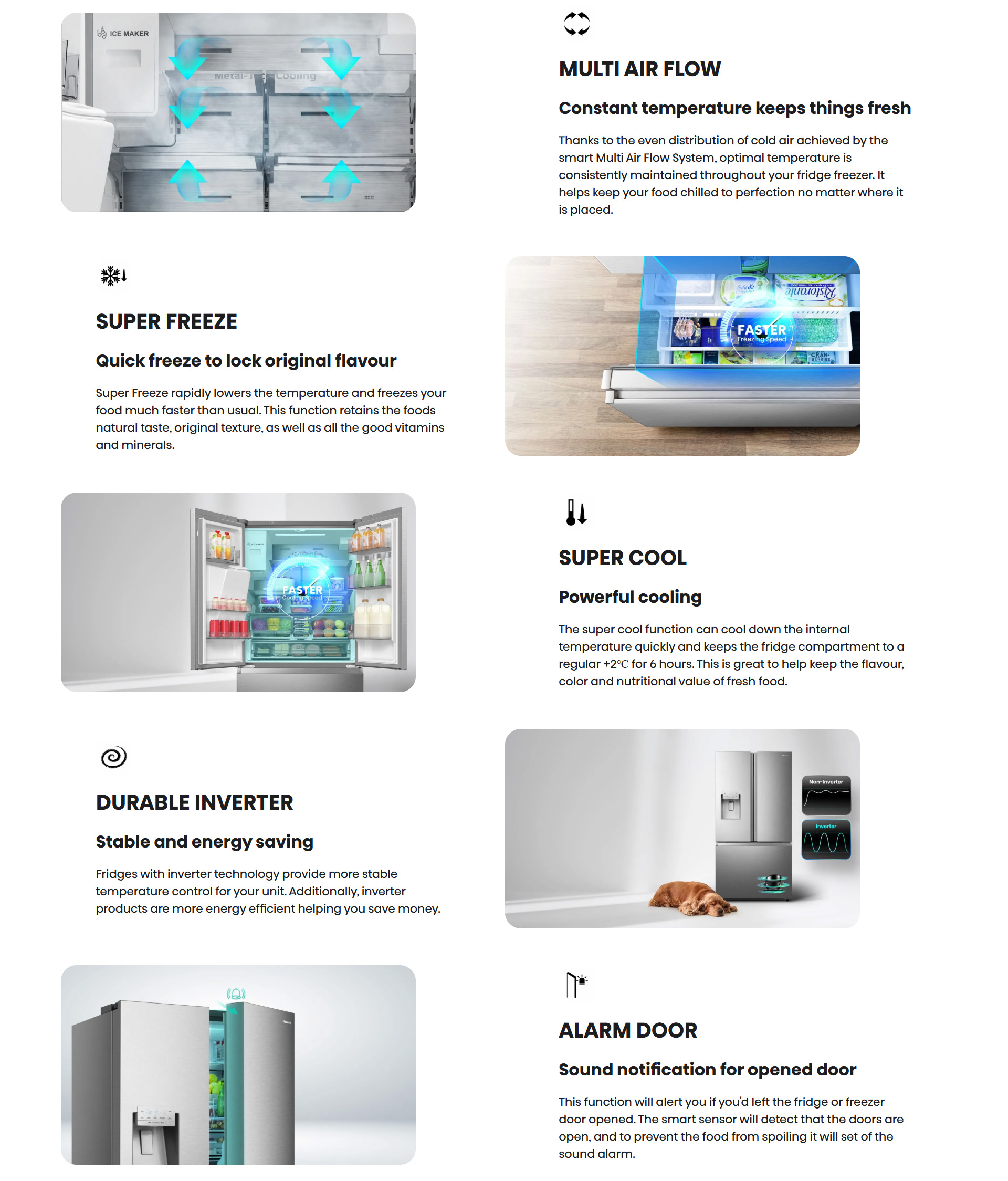 Hisense RF540N4WIE PureFlat 480L French Door Fridge Freezer – Inox