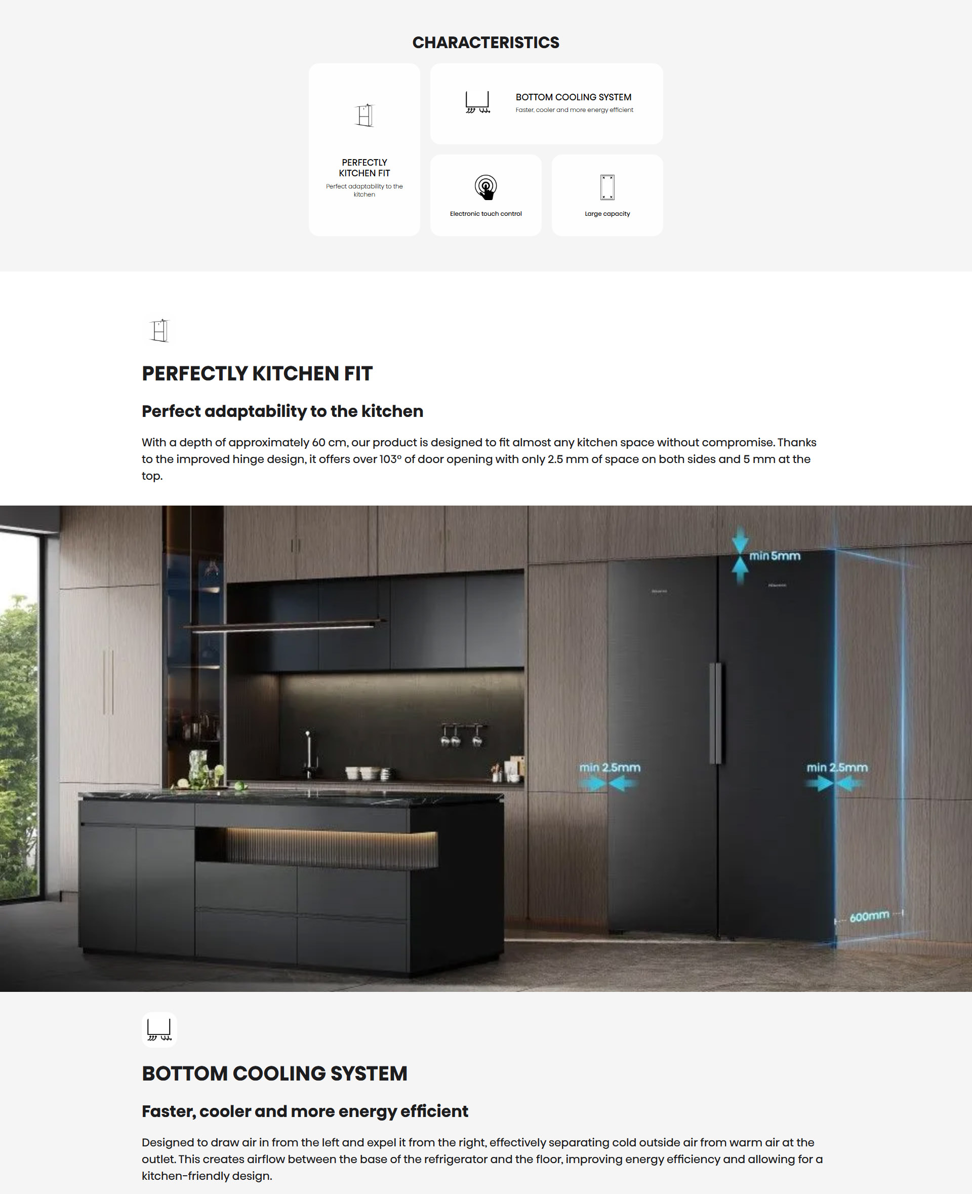 - Dimensions (W x H x D): 595 × 1856 x 600 mm