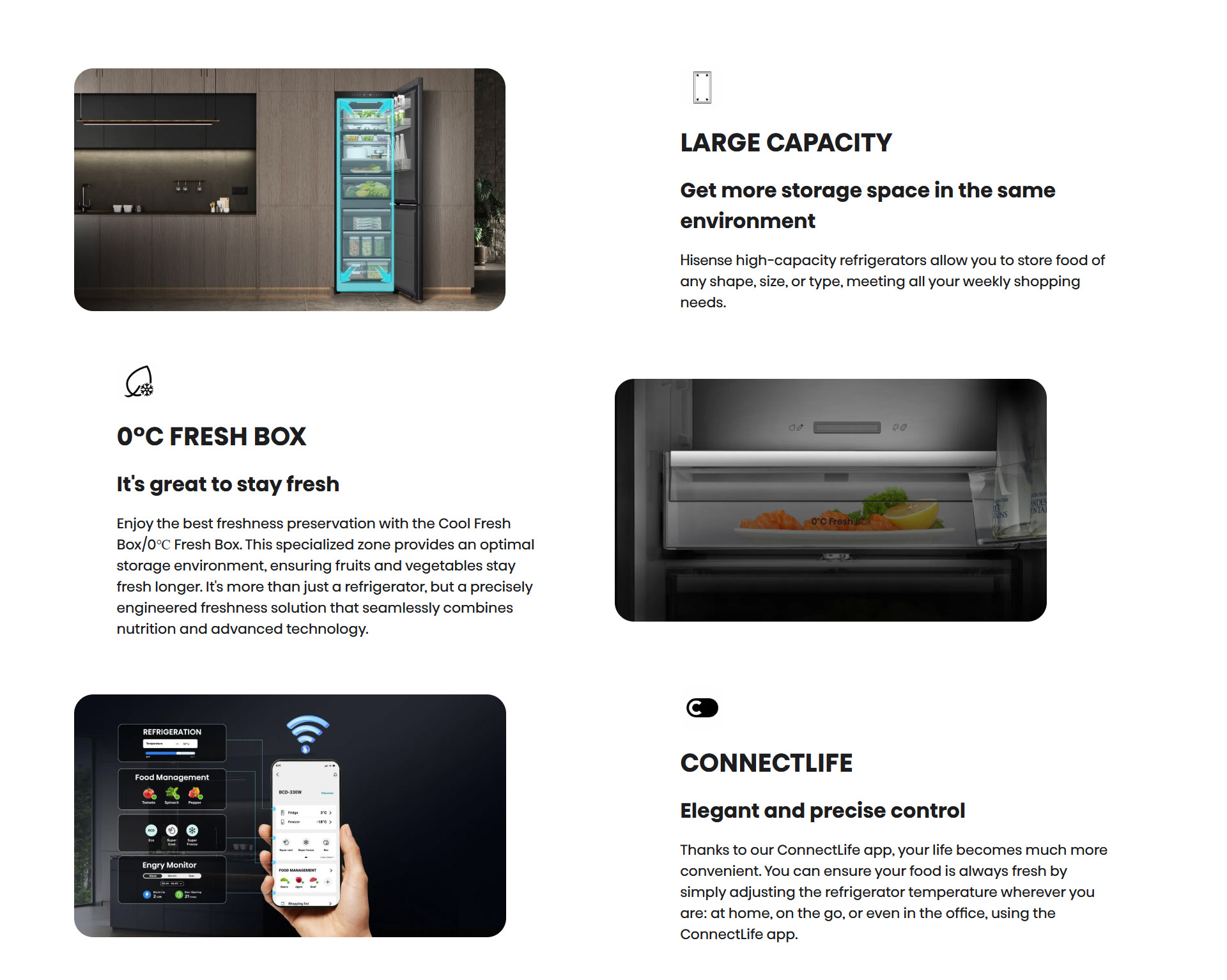 - Automatic defrost (fridge) Multi-airflow system Super Cool function Fresh zone compartment