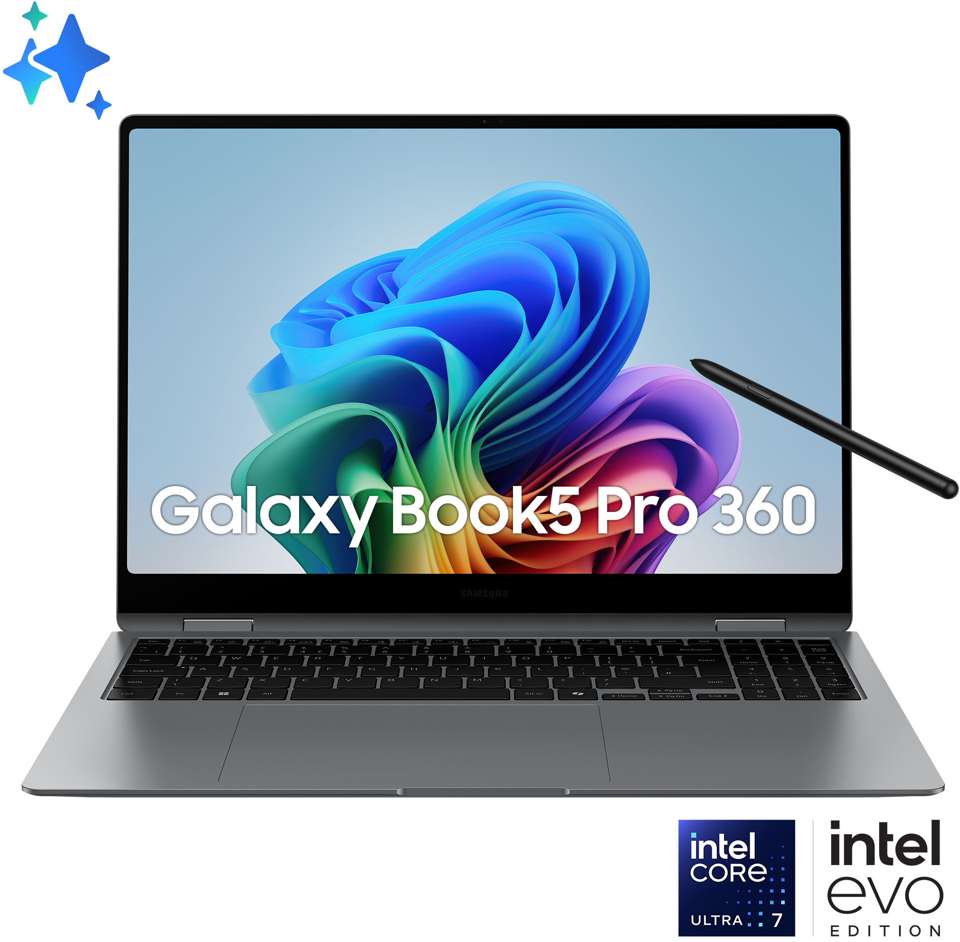 The Galaxy Book5 Pro 360 is a notebook and a tablet in one innovative design boasting powerful technology. Boost your creativity and efficiency with smart AI power and seamless integration into the Galaxy ecosystem.